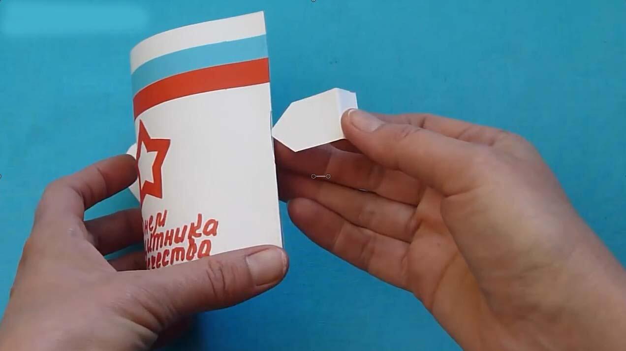 Поделки из бумаги на 23 февраля, оригинальная открытка с сюрпризом