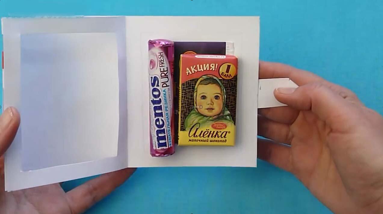 Открытка готова. В этой поделке мне нравится, что это и поздравление, и сладости одновременно.