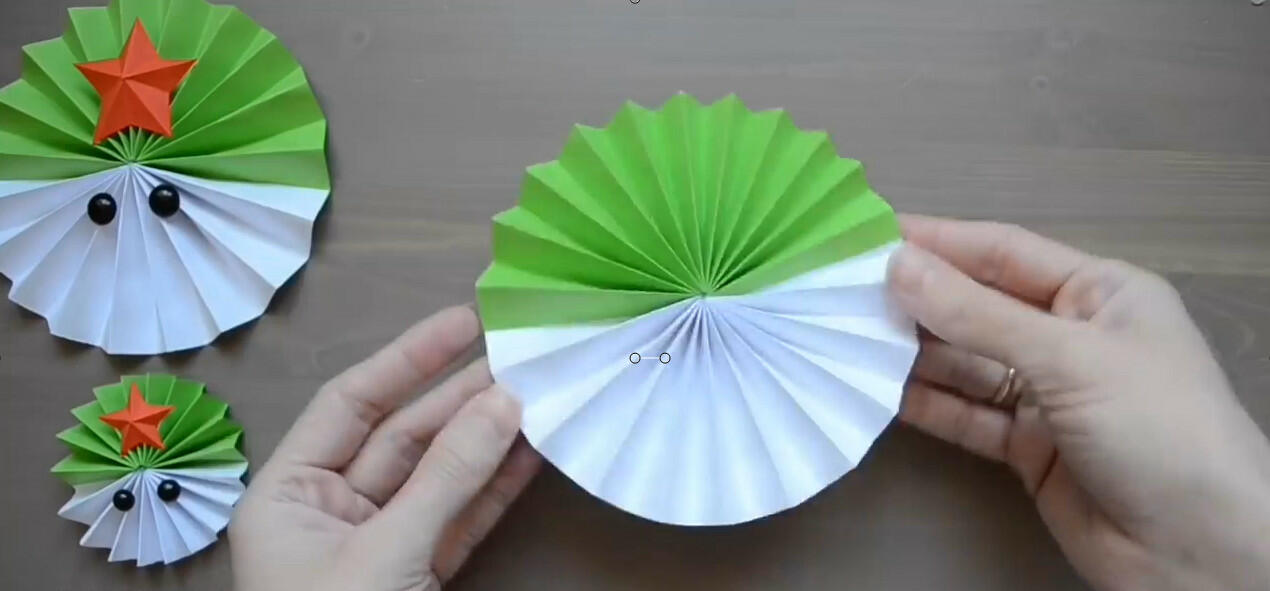 Сначала требуется сделать заготовки. Для этого я отрезаю две полосы (белую и зеленую) одинаковой ширины, после чего я ее гофрирую.