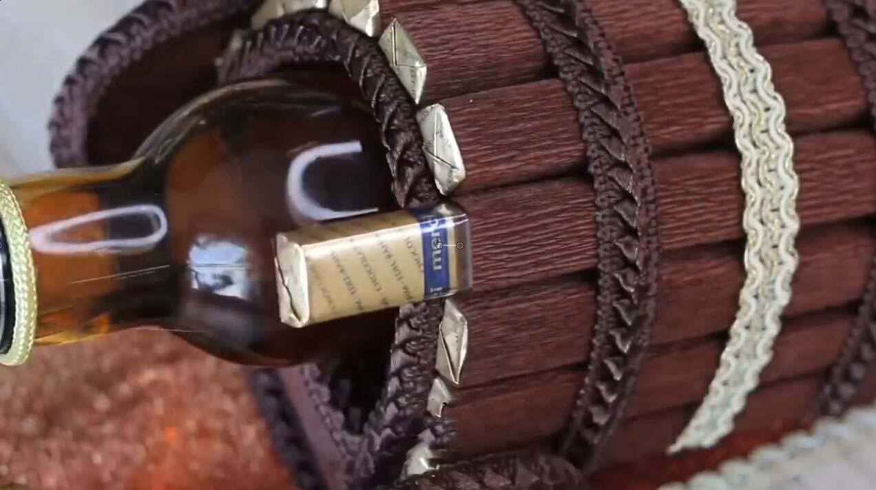 Сладости можно прикрепить двумя способами: при помощи клеевого пистолета либо на двусторонний скотч.